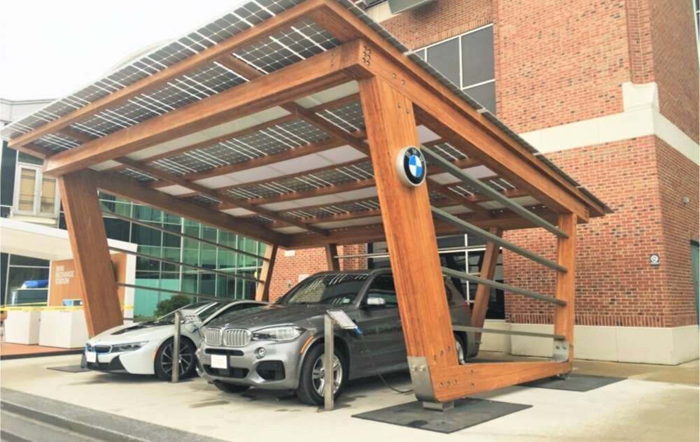 Inspired by our passion for building sustainable structures with mass timber, BMW and ReNüTeq approached Bell to create their next-gen solar charging stations. Constructed from engineered laminated bamboo timber, solar panels and marine grade stainless steel, these structures could be installed without a foundation system and withstand winds up to 200 mph.
