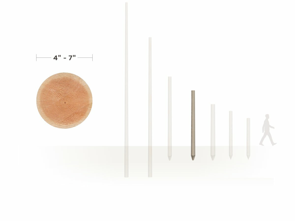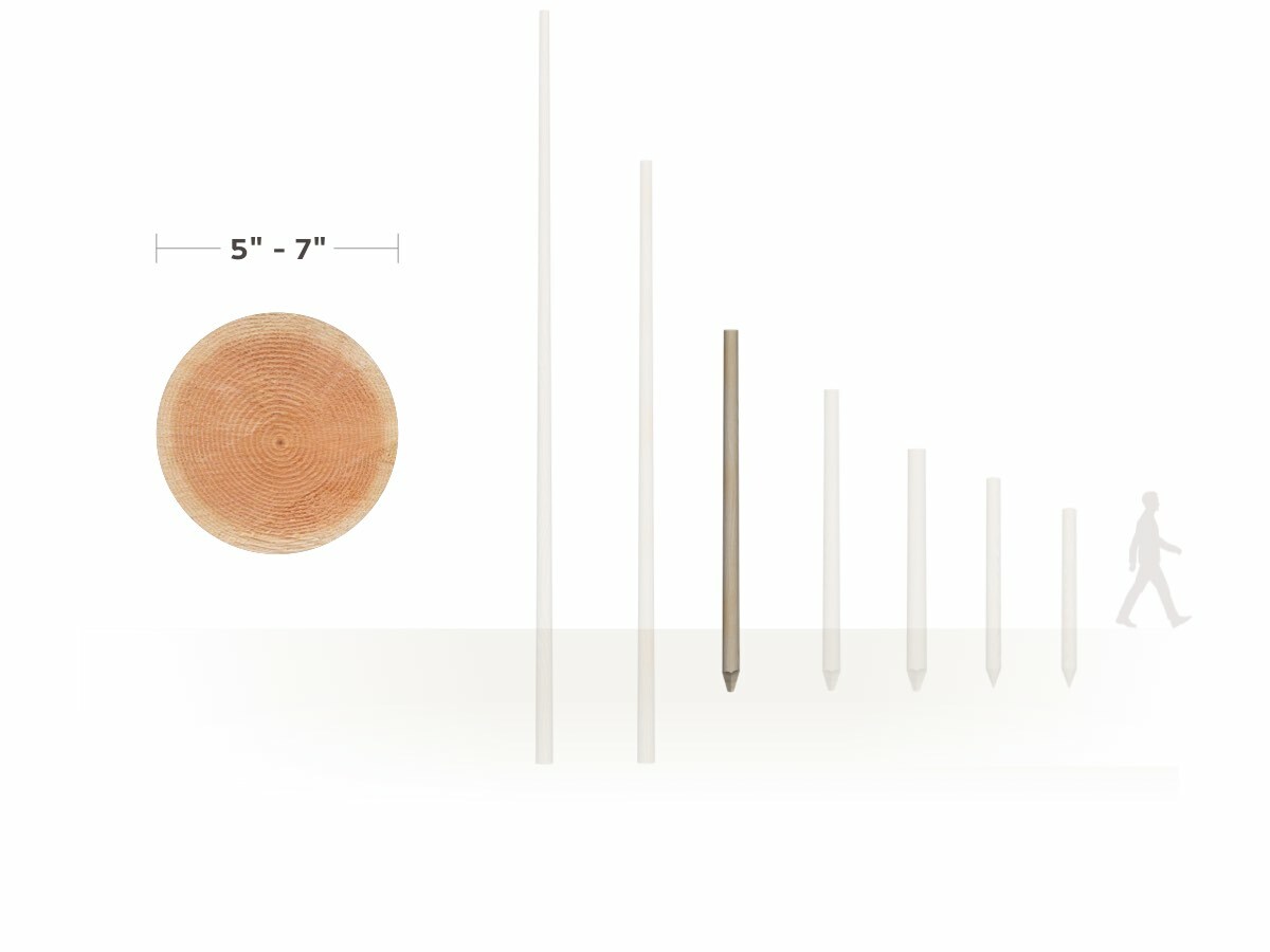 | Taper | Starting at top, diameters are about 1 inch larger for every 8 feet of length |