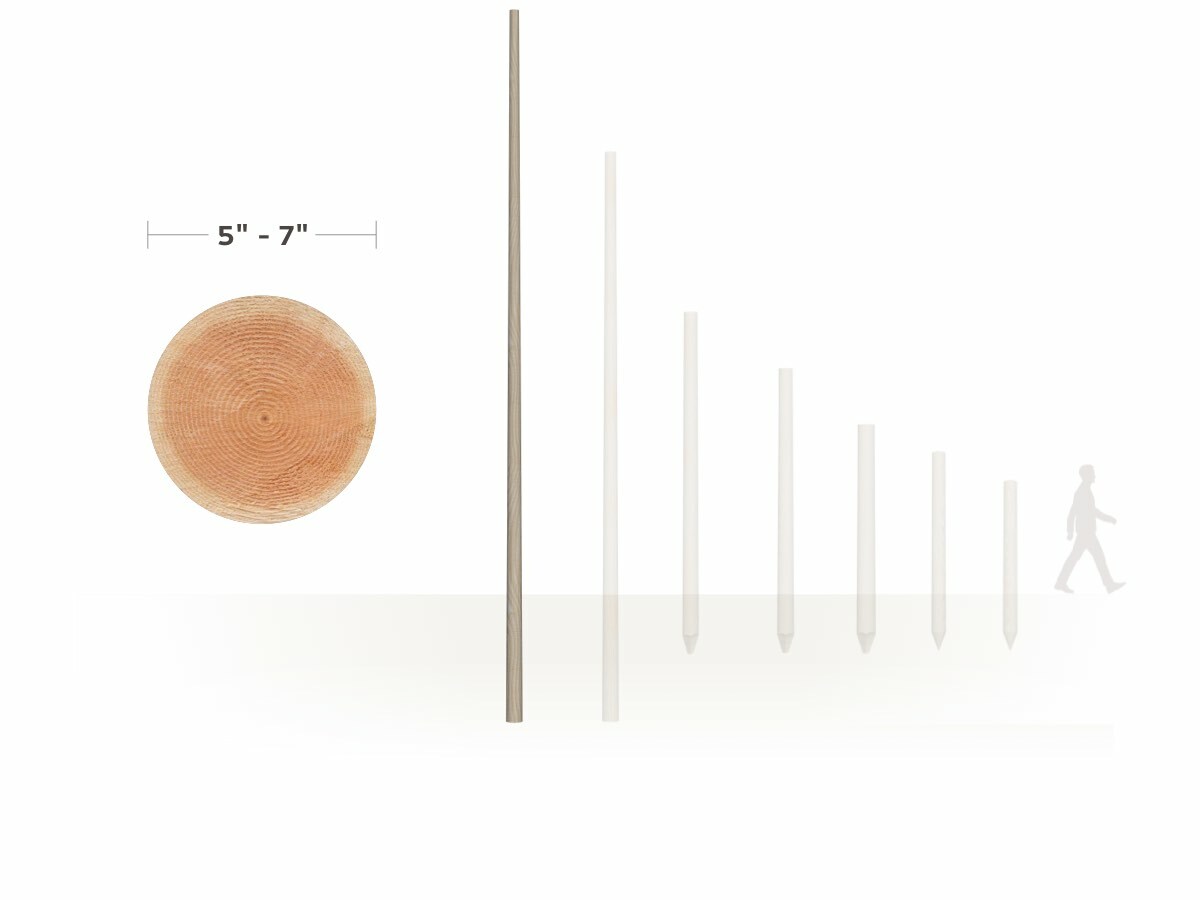 Poles made from sustainable wood fiber resources, sourced by Bell in North America.